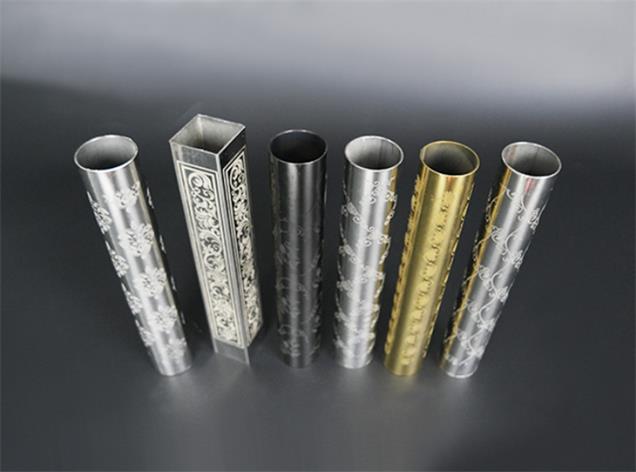 不銹鋼裝飾管的蝕刻工藝是不銹鋼裝飾管通過化學方法,在管表面腐蝕出各種花紋圖案。經(jīng)過蝕刻處理后,不銹鋼管需進行進一步的深加工,如:行局部的和紋,拉絲,嵌金,局部鈦金等復雜工藝處理。不銹鋼裝飾管的蝕刻工藝實現(xiàn)了表面圖案的明暗相間,絢麗多彩的效果。